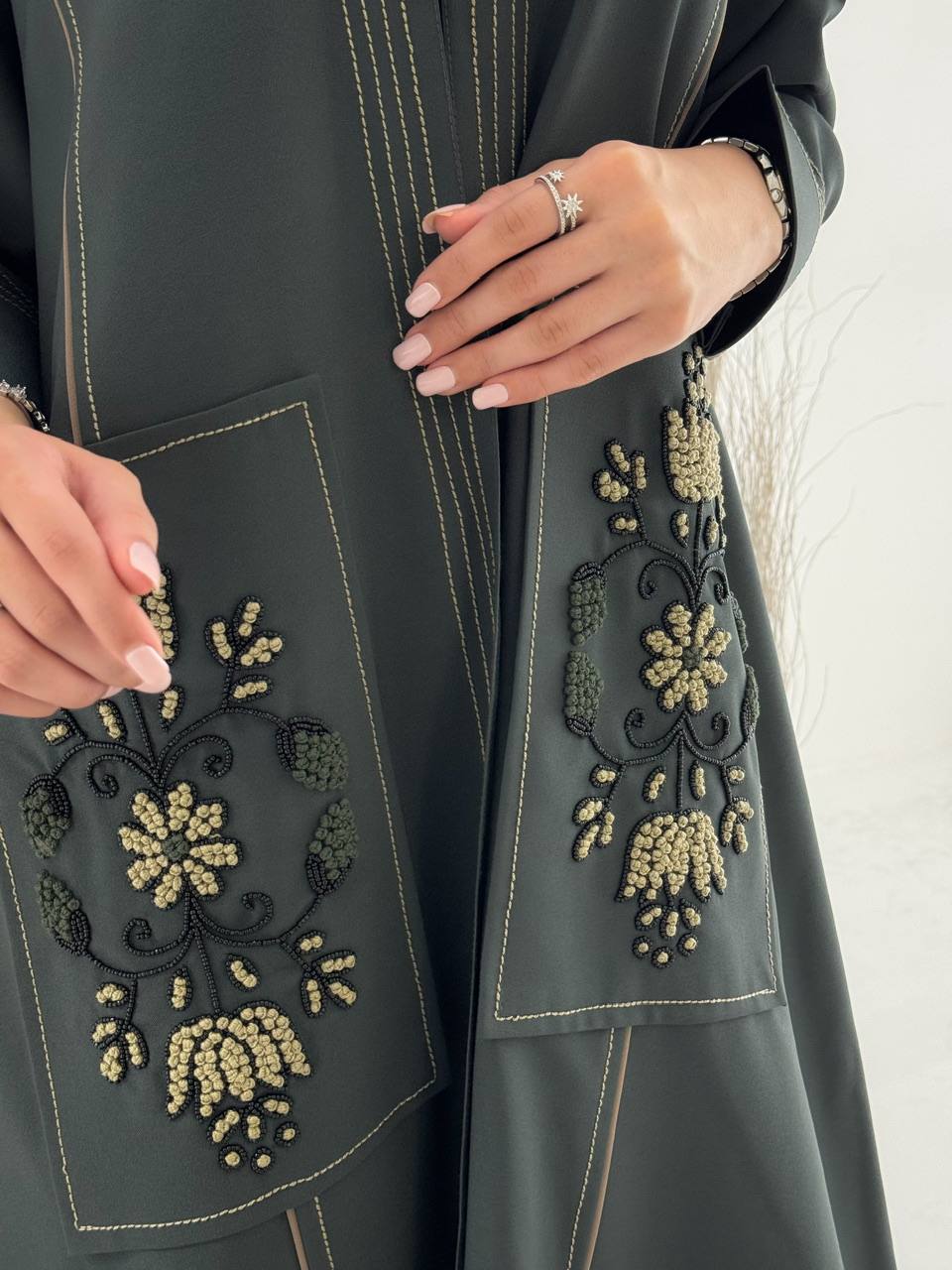 – عباية بقطعة داخلية – لون العباية cedar brown يمكن تنفيذها باللون الاسود